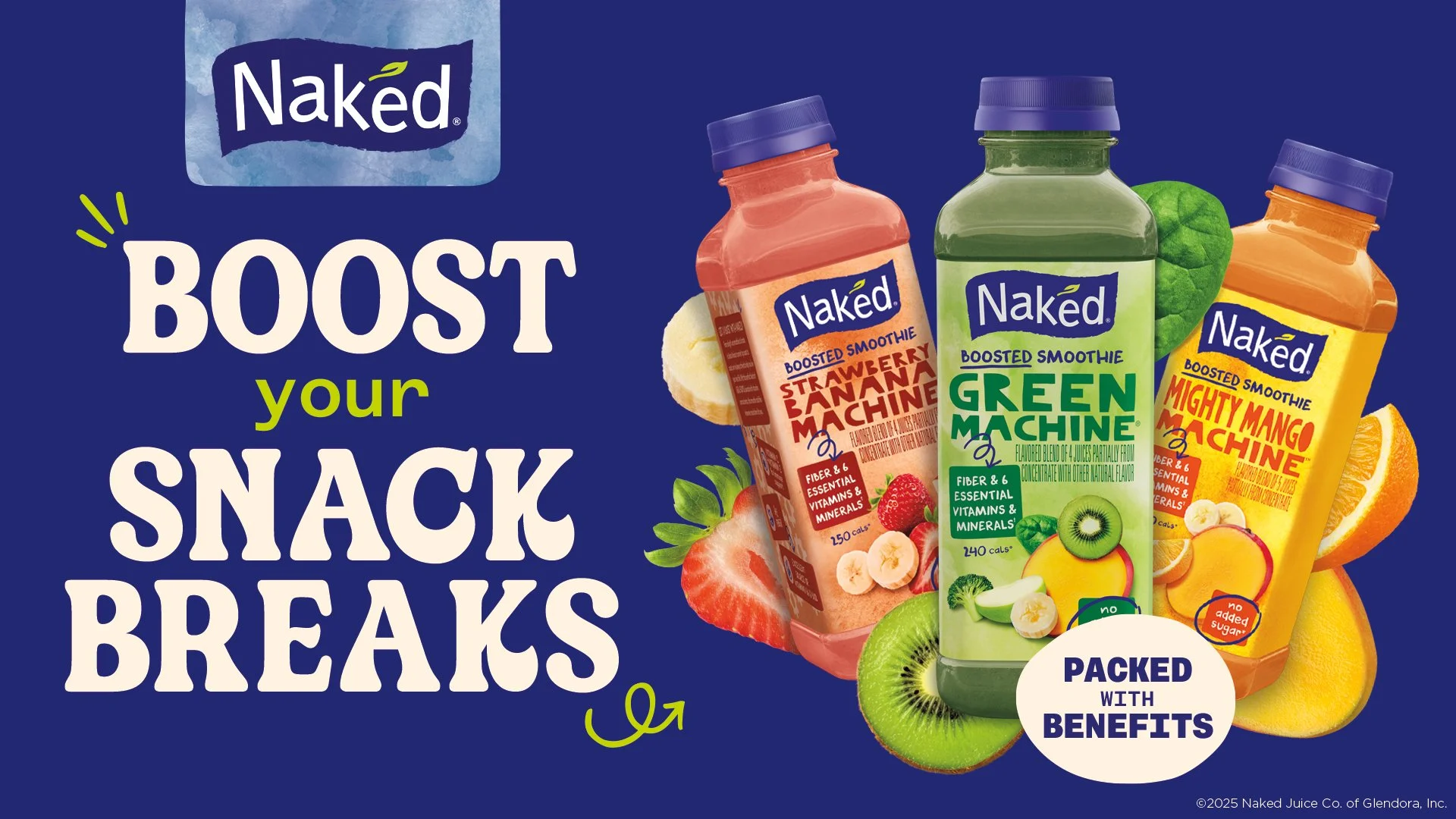 To reintroduce Naked Smoothies to a younger audience, we developed a multi-faceted campaign that brought the brand’s vibrant personality and unique benefits to life. The "Boost Your Snack Break" campaign positioned Naked Smoothies as the ultimate snack upgrade, emphasizing their fiber, vitamins, and real fruit benefits. We tapped into Gen Z’s love for bold visuals, influencer culture, and experiential moments to create a fully integrated brand restage.